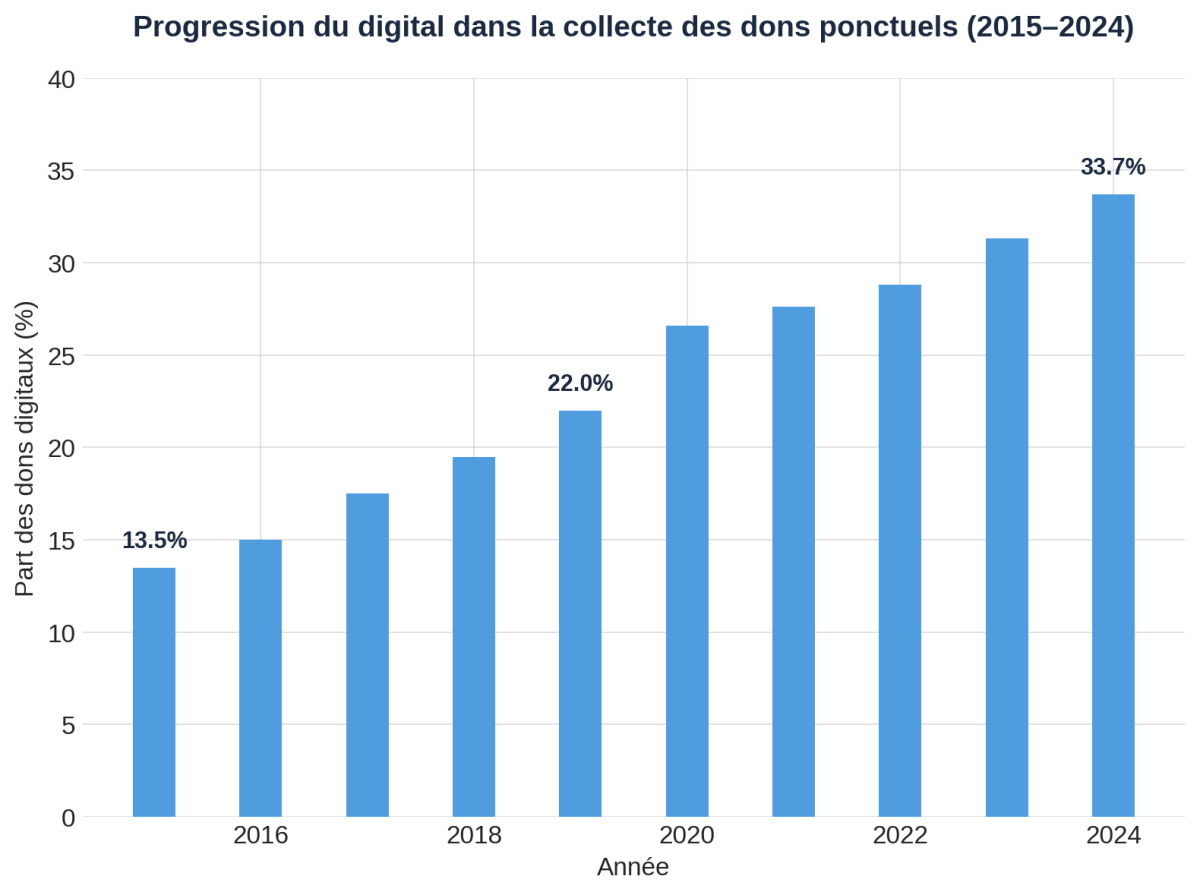 Le digital progresse chaque année, et le don régulier devient la base de la stabilité financière.